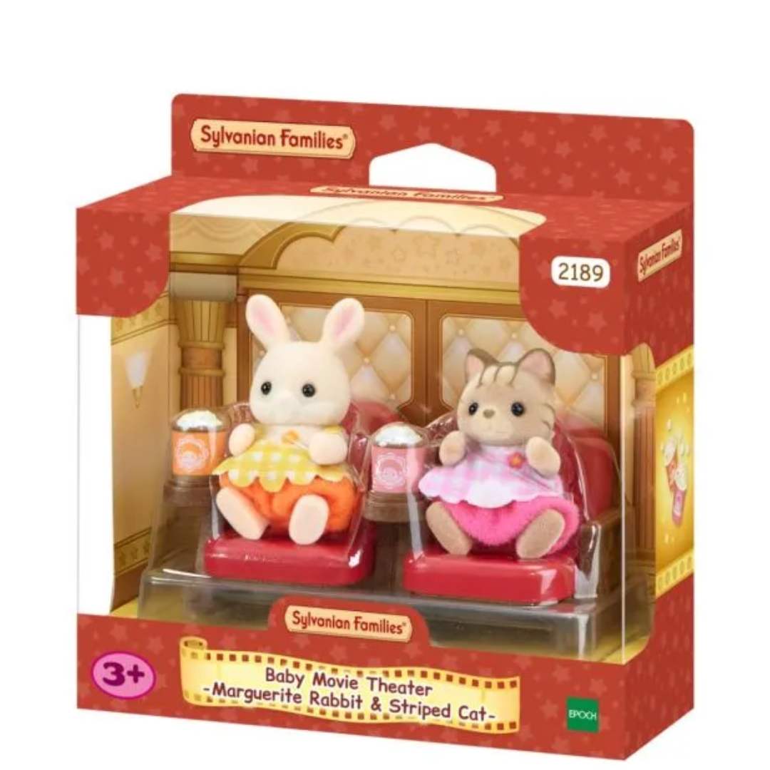 SYLVANIAN FAMILIES BABY MOVIE THEATER MARGUERITE RABBIT & STRIPED CAT