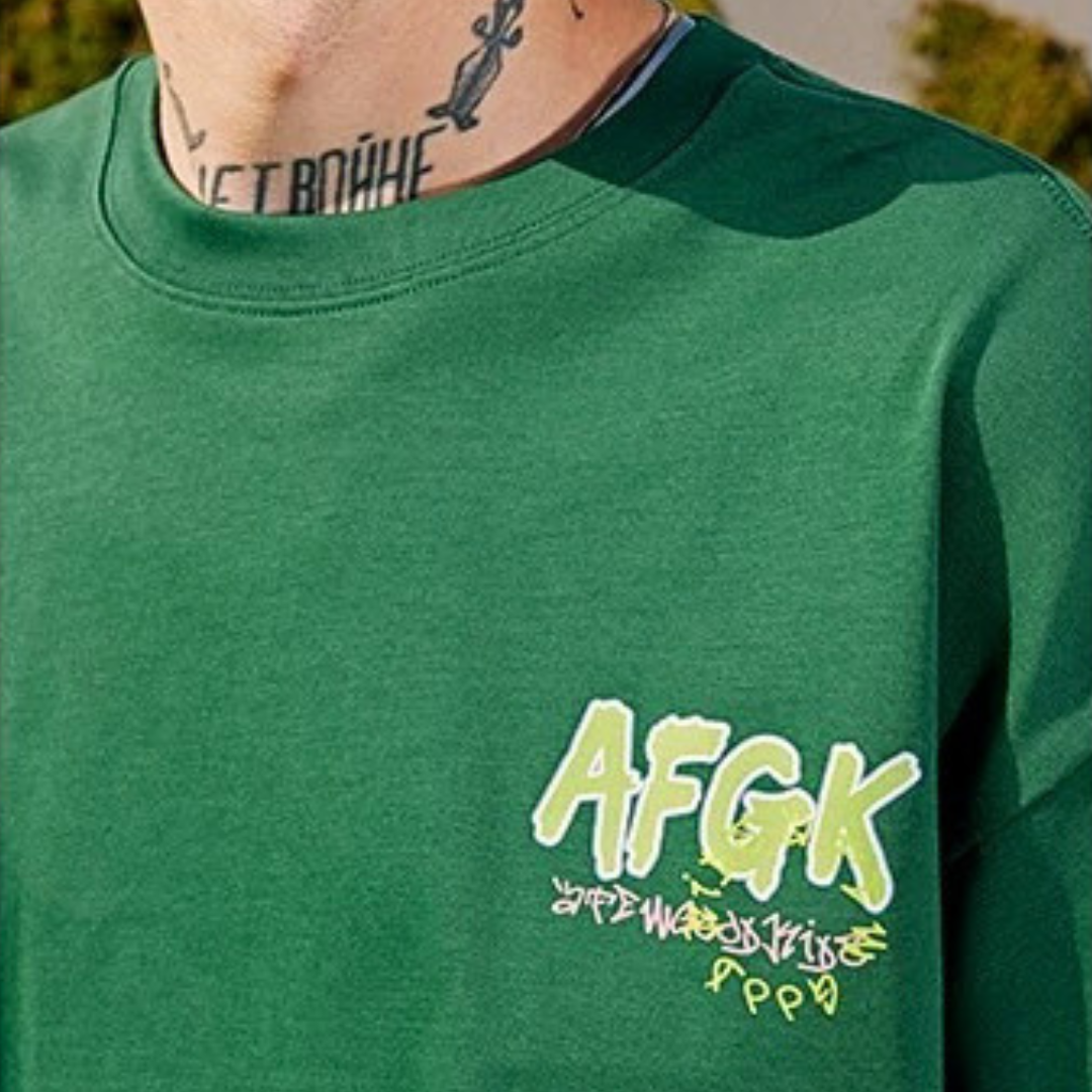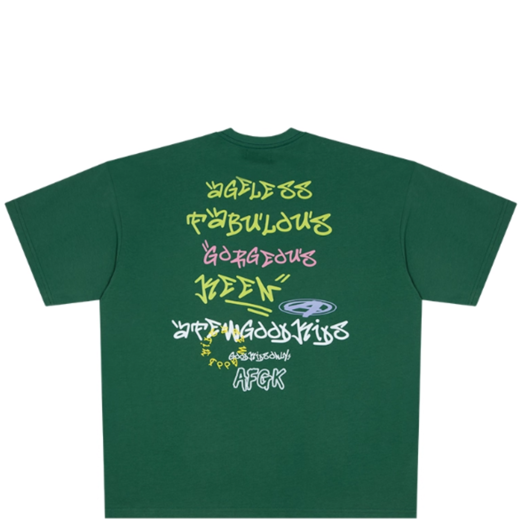 A FEW GOOD KIDS (AFGK) GRAFFITI FONT GREEN TEE